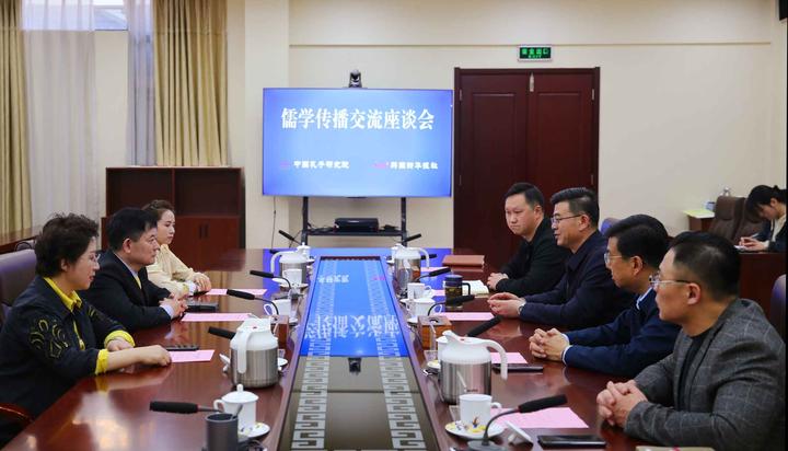 座谈会由孔子研究院党委委员、副院长袁汝旭主持。中外通讯社摄影部主任编辑记者李茂娥,韩中新闻记者协会文化交流艺术团特聘艺术指导、顾问裴凤云,孔子研究院相关部室负责人等参加了座谈会。