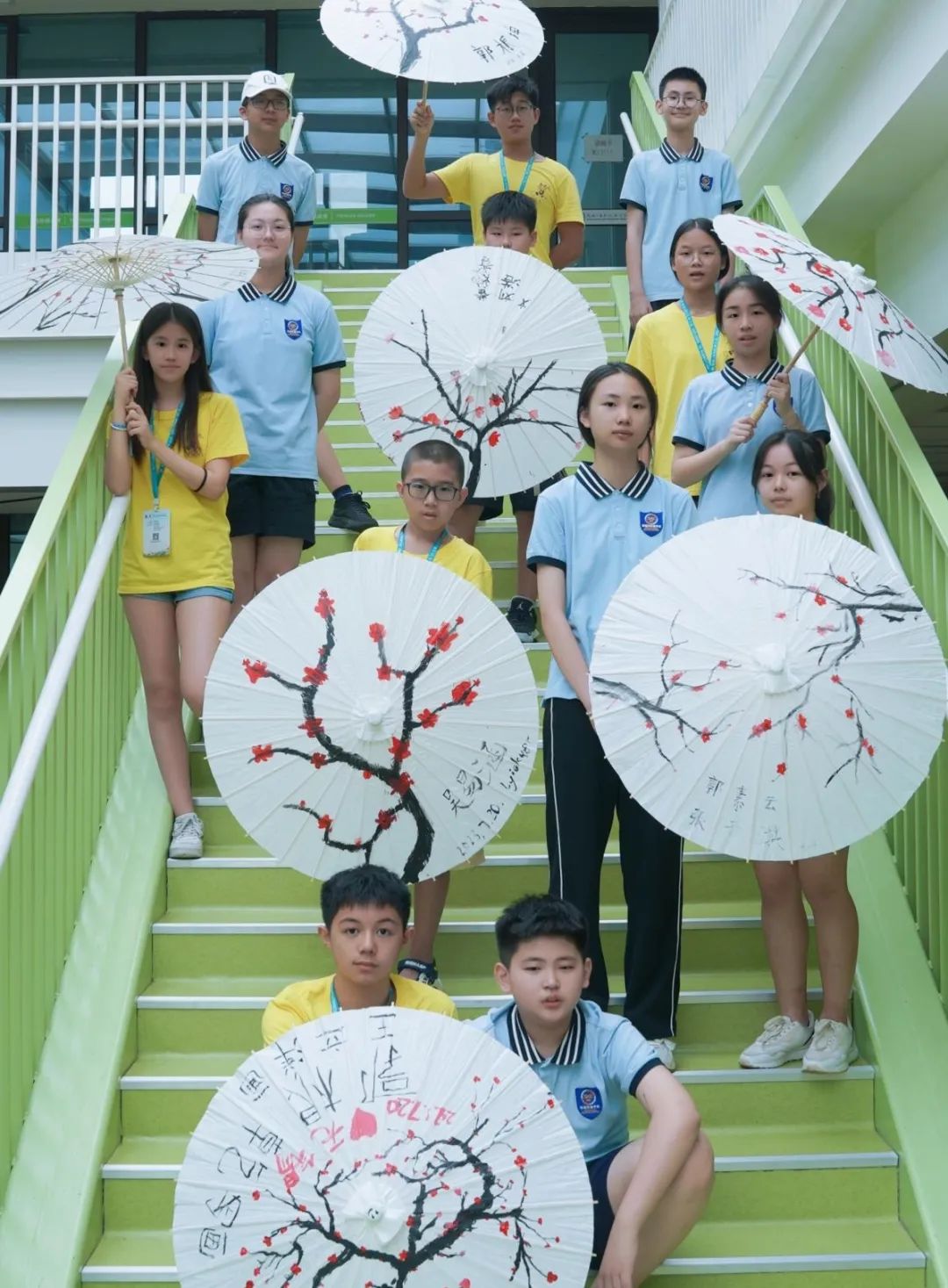 作品完成后,结对的伙伴在伞面上签上彼此的姓名,留作永久的纪念。