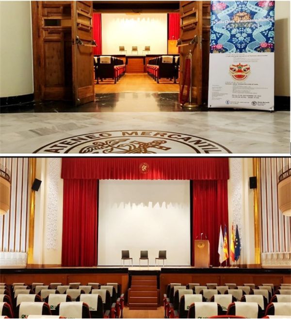 为庆祝中国和西班牙两国建交50周年、一带一路伟大倡议提出的第一个十年,当地时间9月19日下午,“世界非遗 ——中国丝绸(La seda china–Patrimonio mudial)”中国丝绸艺术报告会在世界丝绸之都西班牙瓦伦西亚市政府广场上的一座百年古建筑——Ateneo Mercantil雅典娜商业文化协会总部演播厅隆重举行。