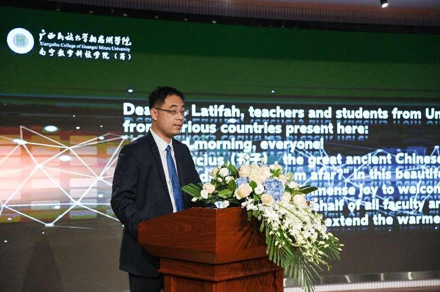研学团将在我校开展为期15天的研学活动,我校国际教育学院协同理工学院、商学院、金融科技学院、艺术与设计学院共同设计建设,为研学团师生们量身定制了5门全英授课课程,并带领他们参访广西启迪创新跨境电子商务有限公司、中国-东盟经贸中心等多家本地头部企业,深入了解体验中国新时代数字科技、数字艺术和数字经济的发展新模式。
