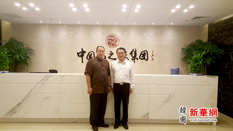 韩国新华网首席记者曹明权摄影报道5月28日,台湾致公党主席陈柏光先生在著名制片人、导演,世界侨报社社长陈俊余先生的陪同下前往位于北京市金长安大厦拜访了国际市