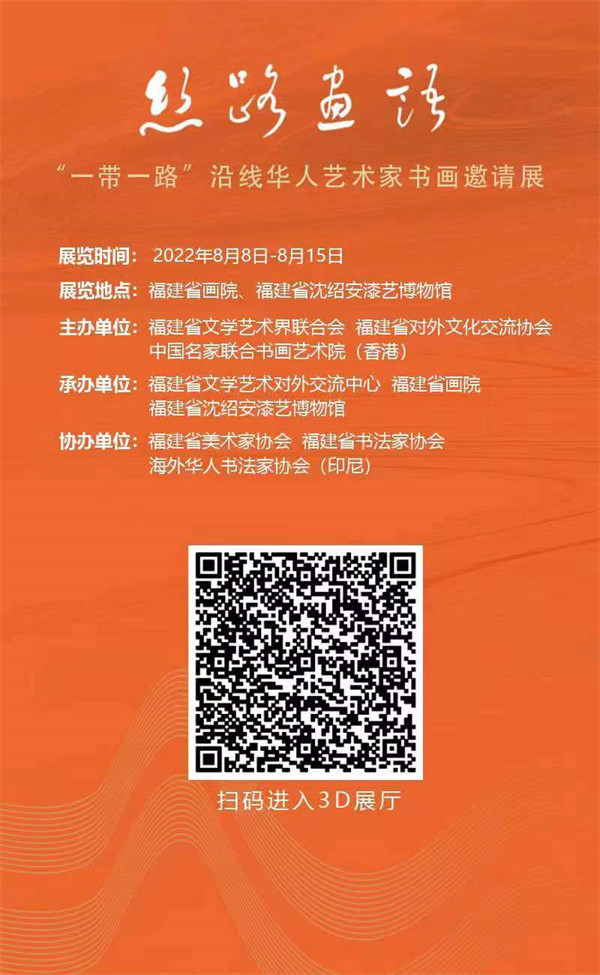 丝路画语——“一带一路”沿线华人艺术家书画展今日开幕3D展厅海报活动合影东南网8月8日讯(本网记者王文青)为深度挖掘海上丝绸之路丰富的历史文化内涵,弘扬和传承