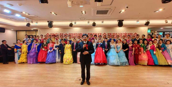 全国在韩中国同胞联合会会长团与嘉宾代表及艺术团演艺人员集体合影留念