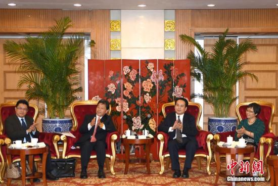 6月13日,中国国务院侨办副主任谭天星在北京会见亚洲台湾商会联合总会代表团一行。 中新社记者 张勤 摄