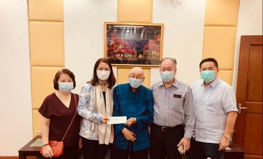 当时时间2020年2月6日,庄垂楷(左三)在长子、长媳与次子的陪同下来到了中国驻菲使馆领侨处,将300万比索(合41万人民币)的支票,交由大使馆转交武汉同胞。当地时间3月