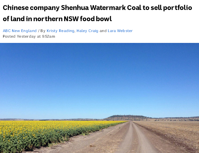 中国神华集团(Shenhua)近日将出售位于新州北部的165.7平方千米的土地,预计总价值将超过1.2亿澳元。由神华集团Watermark煤矿项目所持有的大片土地已经进入拍卖市场