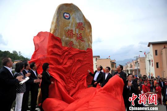 嘉宾为“思延侨爱新村”揭碑。 刘忠俊 摄中新网雅安4月10日电(记者徐杨祎)“感恩侨爱—四川雅安芦山地震灾后重建巡礼”10日在“思延侨爱新村”举行主题活动。国
