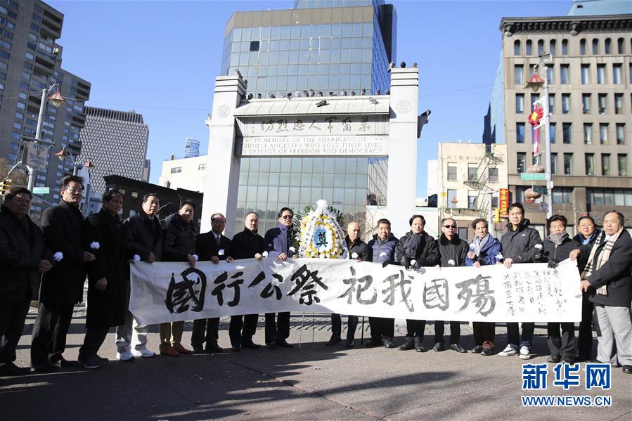 12月13日,在美国纽约,华侨华人代表在纪念活动上打出写有“国行公祭祀我国殇”的横幅。当日,近十个华侨华人社团的代表在美国纽约曼哈顿举行南京大屠杀80周年纪念活