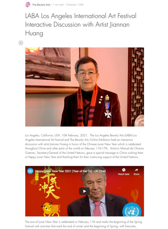 其艺术创作水平成“500位入围艺术家”甄选标准 去年10月举办的2021-2022LABA洛杉矶国际艺术节暨比佛利艺术线上展,中国旅法艺术家黄建南可谓出尽风头。