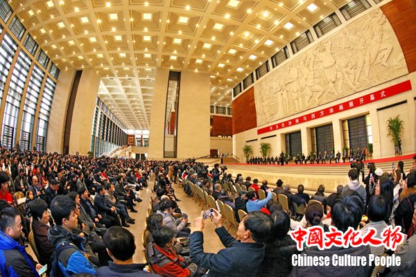 中国国家博物馆高朋满座,气氛热烈,来自海内外文化艺术界的领导、专家学者,以及工商界的嘉宾近两千人出席“韩玉臣油画与西方油画展”开幕式
