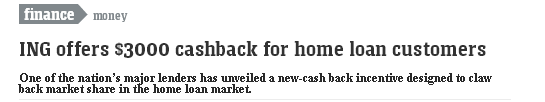 对此,RateCity网站研究主管廷德尔(Sally Tindall)表示,现金返还交易成为ING试图挽回部分失去的市场份额的最新手段。“ING显然希望扩大其市场份额,去年其市场份额一直在小幅下降。这笔现金返还交易将是ING努力扭转这一局面的一部分。”