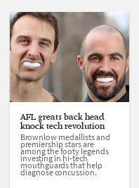 一款名为HitIQ的数据芯片吸引了众多AFL球星的投资,Essendon冠军James Hird、Richmond三冠王教练Damien Hardwick、Kangaroos队传奇人物Wayne Carey、Geelong队前锋Tom Hawkins等人都是这款高科技牙套公司的持股人,Collingwood足球俱乐部对这一新型牙套的投资也有25万澳元。