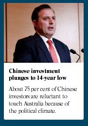 在被问及占主导的中国国企现在是如何看待澳洲这样一个投资目的地时,弗格森说:“它们很谨慎,关注其他市场。未来中国进入澳洲的投资要依赖那些规模更小、寻求更低风险机会的私企。中国投资的前景是复杂、不确定的。我们预计,和往年相比,任何未来的增长会保持疲软。”