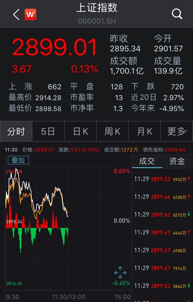 11日,沪深两市集体高开,早盘沪指维持红盘,一度重上2900点。深成指临近午盘转跌;创业板指表现更弱,盘初迅速下探后持续走低。截至午间收盘,沪指报2899.01点,涨幅0.