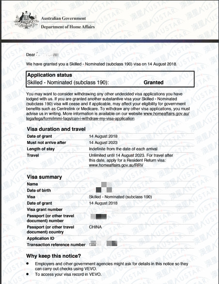 ◆获得澳洲移民局签证邀请(190/491类别);