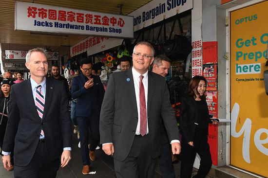 澳大利亚总理莫里森在联邦移民部长大卫•高民的陪同下,走访了南悉尼华人聚居区赫斯特维尔 澳媒 图
