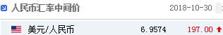 中国外汇交易中心数据显示:10月30日,人民币对美元中间价贬值197点报6.9574,创2008年5月来最低,人民币汇率与7关口仅在咫尺之遥。