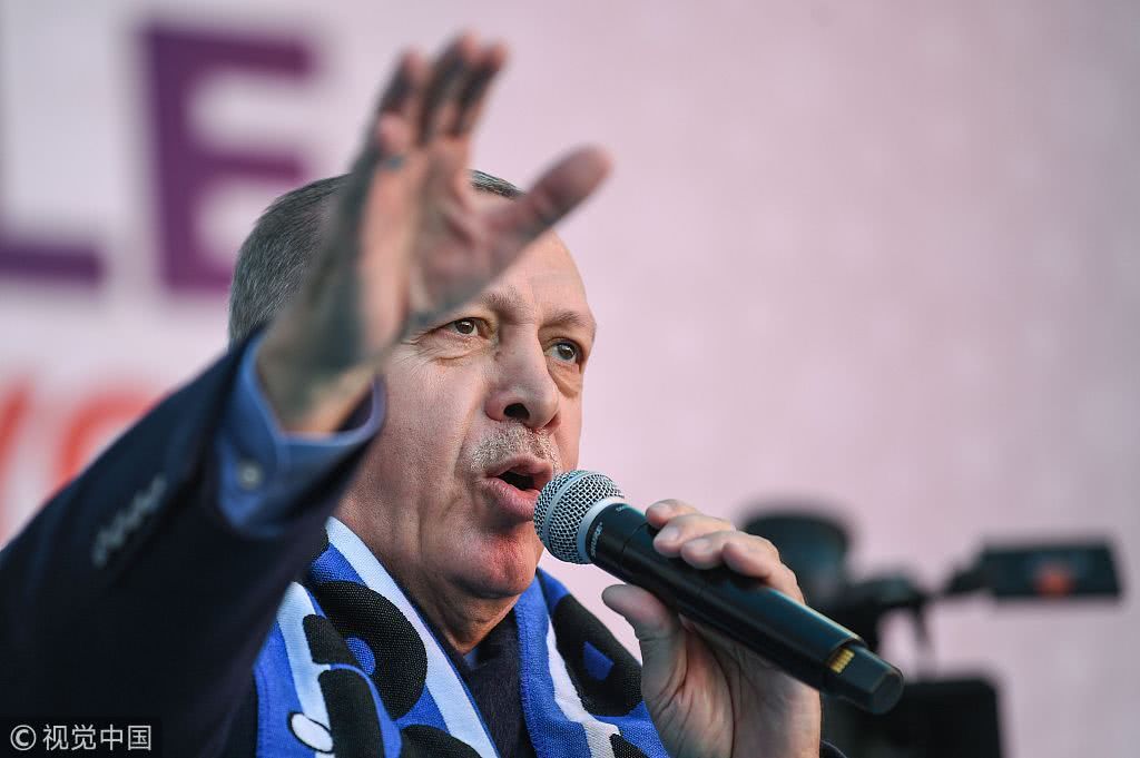 3月5日,埃尔多安在选举集会上演唱他的选举歌曲(图源:视觉中国)