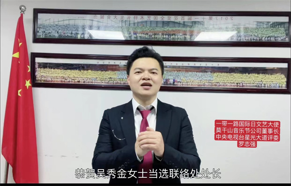 世界和平丝带组织第一届至第八届委员会主席陈恩田和“一带一路日”文艺大使、中央电视台星光大道评委罗志强分别在线上发来视频祝贺。