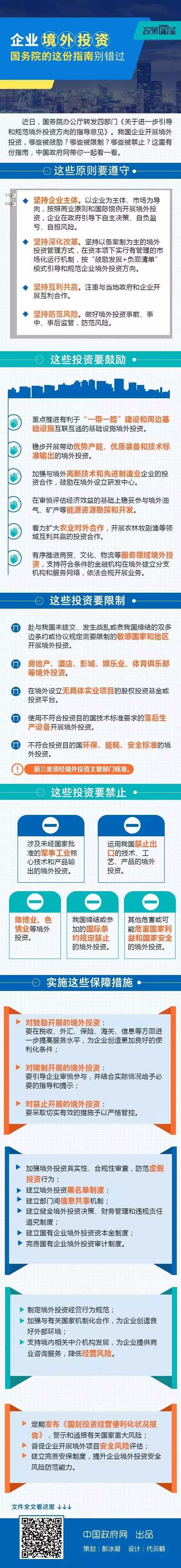 近日,国务院办公厅转发四部门《关于进一步引导和规范境外投资方向的指导意见》。我国企业开展境外投资,哪些被鼓励?哪些被限制?哪些被禁止?这里有份指南,一起来看一看吧。
