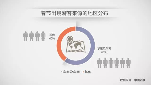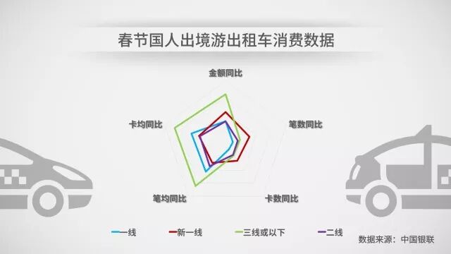 银联带你“数”说中国年 中国银联与携程 2018春节出境游大数据 新年开工第一周,看着自己蹭蹭上涨的体重,再瞧瞧别人慷慨激昂地讲述旅途趣事,你是不是有点闹心呢? 不知大家有没有发现,在刚刚过去的春节长假里,你的朋友圈不再只是吃吃喝喝的聚会秀,多了不少全家出国度假的旅游美照…… 由此我们可以看出,近年来随着居民生活水平的日益提高,越来越多的国人选择与亲朋好友出国旅游欢度春节。近日,中国银联与携程旅游集团联合开展了2018年春节出境游大数据研究,结合银联网络消费交易数据和携程出行订单数据、携程全球购消费数据等,反映了我国居民春节出境游的客群年轻化、足迹扩大化、方式多元化、购物理性化、消费品质化、服务全面化等新特征。 1 出境游:人群变化篇 2018年春节期间,我国居民出境游规模创历史新高,出境游达650万人次,同比增长5.7%。 按地区来看,华东和华南地区游客仍是出境游的主力,其境外游的消费贡献近60%,但华中和西南地区游客的出境游群体迅速增长。 从年龄段来看,70、80 后依然是春节出境游的中坚力量,越来越多的90、00后加入春节出境游大军。相比之下,不受春节黄金周时间限制的中老年游客占比下降。 随着收入水平的不断提升,越来越多的人选择春节带家人外出旅游,奖励孩子、犒劳伴侣等成为今年春节出游客群的关键词。其中,亲子游占比34%。带爸妈出游也逐渐成为孝亲礼,占比达15%。 2 出境游:范围升级篇 随着出境游人群日趋年轻化,游客出境游足迹也越来越远。2018年春节,一线城市境内游客足迹遍及100个国家和地区,而新一线城市居民的旅游目的地数量增长更快。 从出境游目的地来看,香港地区、澳门地区、日本、新加坡和泰国等传统热门地区依然是境内游客春节最爱去的五个境外目的地。但菲律宾、澳大利亚以及斯里兰卡、俄罗斯、土耳其等冷门地区也进入了新兴热门目的地榜单,在境内游客常去的国家中增速较快。 3 出境游:方式升级篇 伴随着境外自由行的兴起,境内游客出境游在租车上的花费呈现较快增长。 来自一线城市的游客租车人数及花费最多,但三线或以下其租车的花费、卡均交易金额和笔均交易金额增速都明显快于其他城市。同时,海外加油类商户交易规模翻番,来自一线城市的游客相关花费占比超过50%。 随着人们对境外游体验的重视加深,单国深度游越来越受欢迎。 以赴日游客为例,今年春节,长崎、小松、白川乡等小众目的地旅游人数均呈爆发性增长,越来越多的游客不满足于仅在东京、大阪等热门城市观光,更希望在当地拥有更加深入、更加本土的旅行体验。 同时,越来越多的游客倾向于体验当地文化习俗来追求个性化的旅游经历。 如通过美国的“洋向导”去总统特朗普的豪宅中做客,去马来西亚潜入沙巴当地原始族群领略原住民习俗,在泰国跟着国家运动员学习打泰拳等。 4 出境游:消费能力升级篇 受春节黄金周季节性影响,出境跟团游、自由行产品预订的人均成交价同比上升5.6%,人均成交价达到9500元。其中,89%的消费者选择4钻、5钻产品。 从购买旅游产品的客源城市来看,苏州以12114元夺得第一名。除了北京、上海等一线城市以及苏州、无锡、杭州、南京等人均收入相对较高的城市外,西北的银川、中部的郑州、东北的沈阳也榜上有名。 从游客在境外当地的消费来看,来自鄂州、邵阳、佳木斯、湖州、三亚、景德镇、宁波、绍兴和杭州地区游客的境外单人消费金额位居全国前列。 从海外目的地来看,南极、阿根廷、巴西、大溪地、挪威、坦桑尼亚、冰岛、墨西哥、新西兰、芬兰成为旅游产品预订客单价最高的TOP10。春节前往这些目的地旅游以家庭、情侣居多,平均每户家庭预定金额可达10万元以上。其中,春节去南极的游客平均花费最高,达到16万元,且今年春节报名出游的人数比去年多一倍。 5 出境游:品质升级篇 在境外购物方面,近几年,受热门微信号、影视以及热搜话题度的影响,用户的境外购物清单有所变化。以英国为例,除Burberry、劳力士、百达翡丽等品牌奢侈品等常年位列游客购物清单外,女王专用Fulton鸟笼伞、仅需百元的Floris香水等也受到赴英游客的热捧。 同时,游客出境购物消费也逐渐理智和个性化,购物行为和偏好均有所升级,从单纯的抢爆款到逐步向购买高端体检、HPV疫苗等“健康保养”转变。通过跟踪深度出境游爱好者(连续三年春节出境旅游)发现,这部分高收入、高学历、高要求的“三高”人士偏好购买女性消费品。男性用户的旅游购买力也在不断提升,购买内容跨度更大,如任天堂、“椰子鞋”、限量发售品、海外书籍等。 除购物以外,游客在境外餐饮、文娱等服务类消费规模也快速增长。 如去日本的游客更爱当地的美食。所有城市游客在日本的餐饮消费占比均有上升,三线及新一线城市的餐饮消费同比增速最高。其中,三线或以下城市增速更是高达93.48%。 以广东中山市的游客为例,在日本的消费中,餐饮类消费金额增速最快,达到42.5%,远高于其春节期间购物和住宿类的增速。 而去欧洲的游客更爱欣赏当地的文化,文娱类消费规模增速超过20%,各城市文娱消费的占比均较去年春节大幅提升。其中,上海游客在欧洲的文娱类消费同比增长更是高达37%。 从不同地区来看,华东及华南地区游客最为热衷品尝美食,过去两年内境外春节消费中