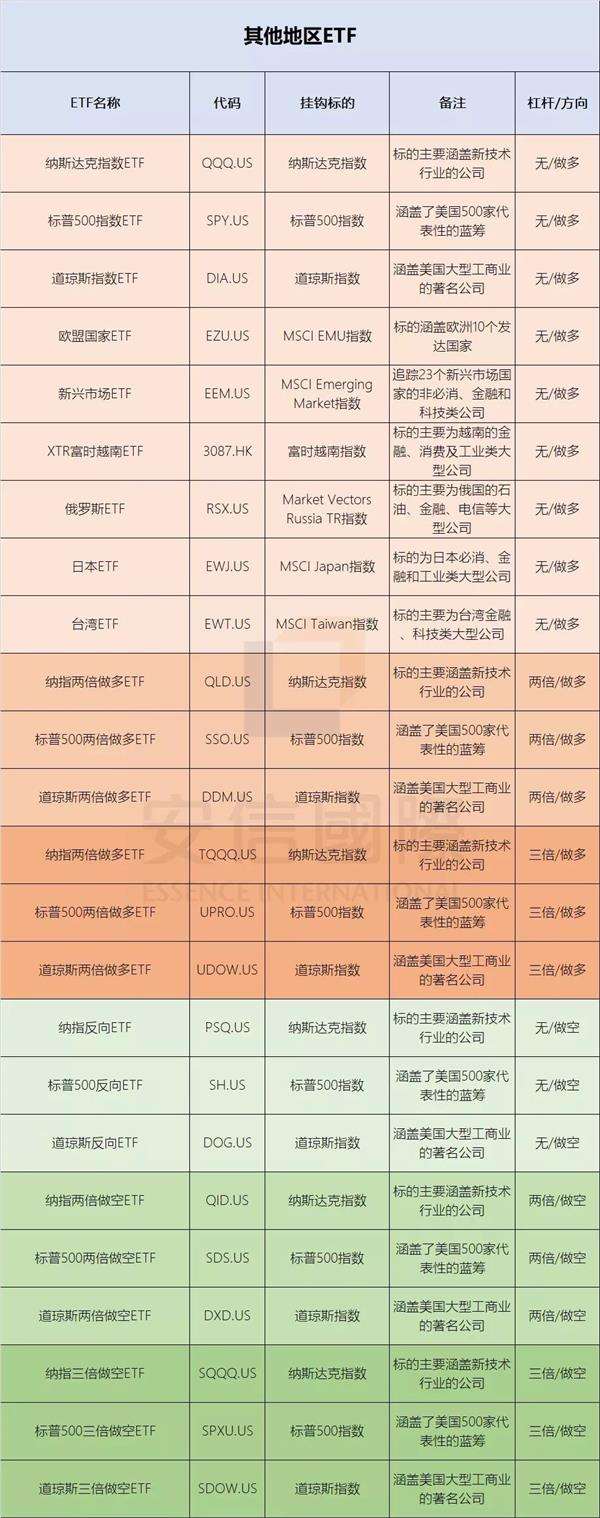全球经济困局,地缘政治危机。在追逐风险和规避风险互现的环境中,ETF能让你在拥有一个股票账户的情况下轻松买遍全球的投资品类,带来稳健的收益。以下为安信国际为你整理的港美股主要的ETF,供参考。