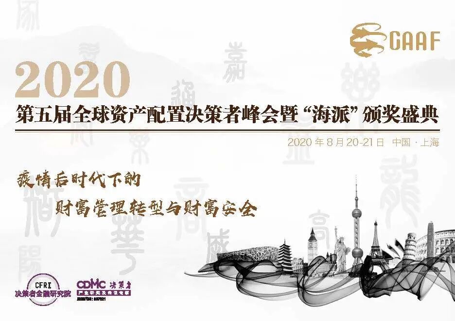 GAAF第五届全球资产配置决策者峰会暨“海派”颁奖盛典2020将于8月在上海隆重登陆 GAAF 第五届全球资产配置决策者峰会暨“海派”颁奖盛典 2020(GAAF2020),将于 8 月20-21日在上海召开!决策者金融研究院,作为基于研究的具有圈层属性的亚太金融资源 To B/To C 整合者和媒体人,诚邀高净值人群,私人银行、家族办公室、第三方财富、资产管理公司、基金、证券、信托、保险、期货、高端生活方式提供商等决策高层共襄盛会! 8月20-21日,上海,GAAF第五届全球资产配置决策者峰会暨“海派”颁奖盛典2020期待您的莅临! 主办单位: 决策者金融研究院(CFRI) 决策者集团(CDMC) 历届指导/支持机构: 国际财富管理协会(AIWM) 特许另类投资分析师协会(CAIA) 大中华地区私人银行家协会(APB) 亚洲家族办公室协会(AFO) 另类投资管理协会(AIMA) 为什么参加GAAF2020 战略高度:与行业高层共洽疫情后时代的财富转型 供给侧改革:资管新规和疫情将如何重塑财富市场竞争格局? 投资策略:疫情后时代的海内外、跨品类投资策略 获客与投资者教育:疫情期间如何线上+ 线下全渠道营销创新、获客和转换落地 ? 产品生态:疫情下如何开发或合作符合资管新规的有竞争力的产品? 风控合规:疫情下风控制度和风控流程的承压与优化 资产保值:危机下个人 / 家族财富如何最大程度保证安全甚至增值? 家族传承:顶层设计、家族精神传承和财富传承 私人银行:获客、产品和数字化的经典案例 独立财富:面对新环境、新市场和新客户的涅槃重生 留学、置业和海外身份规划:疫情下的挑战和机遇 ESG:ESG 将如何影响您公司的股价和长期发展? 精准受众:300 位现场参会嘉宾 ,3000+ 线上精准听众 定制活动:闭门会、客户会、VIP 午宴、培训、考察等 “海派”颁奖盛典:国内外 50+ 媒体同步宣传。