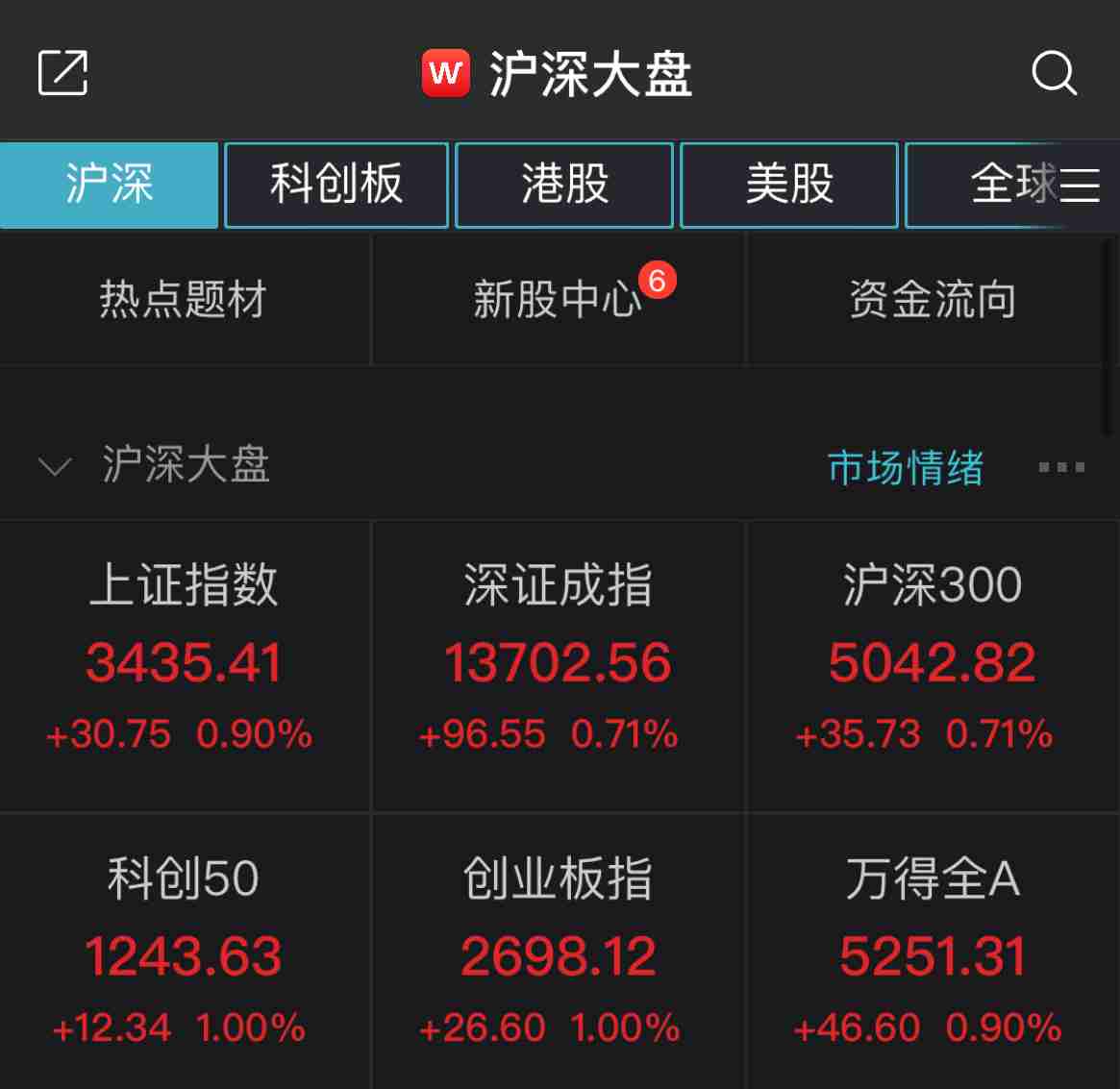 截至午间收盘,沪指报3435.41点,涨幅0.9%,成交额2170.16亿元;深成指报13702.56点,涨幅0.71%,成交额2766.03亿元;创业板指报2698.12点,涨幅1%。