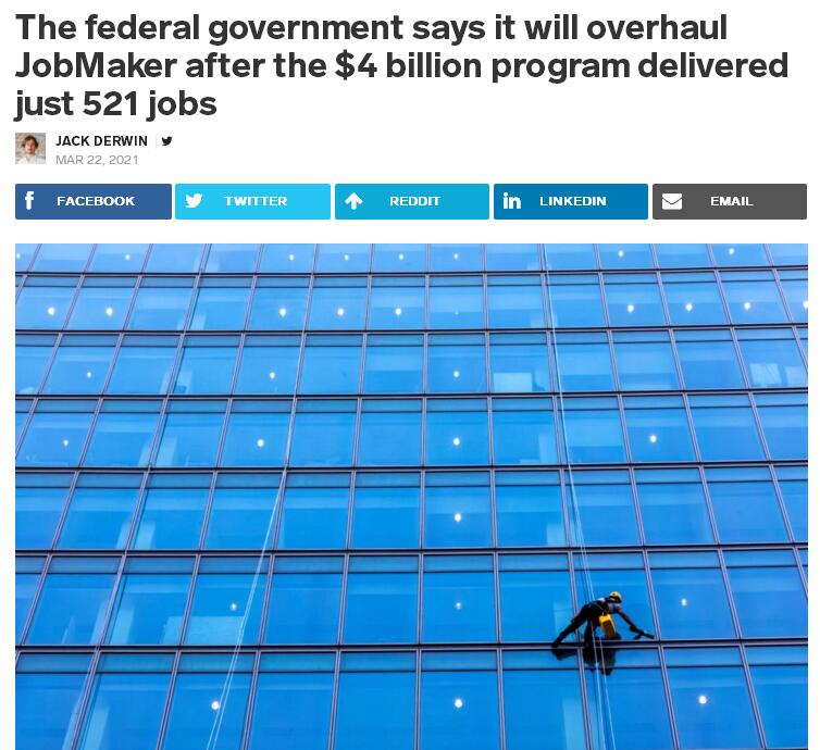 联邦财政部22日透露,工作制造者(JobMaker)计划启动6周后,目前仅支持了521个岗位,远低于预期的1万个岗位。对此,联邦表示将全面改革JobMaker。