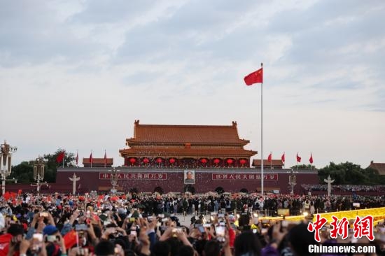 2021年10月1日,中华人民共和国成立72周年,北京天安门广场举行国庆升旗仪式。中新社记者 盛佳鹏 摄