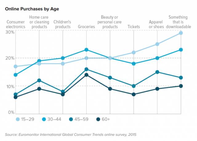 尽管许多国家都面临着人口老龄化的问题,但是2016年,55岁到65岁之间的消费者变得更有活力,工作比例上升,热衷于保持身体和心理的健康,整体生活更加充实。这也让消费者群体变得更加多样化。