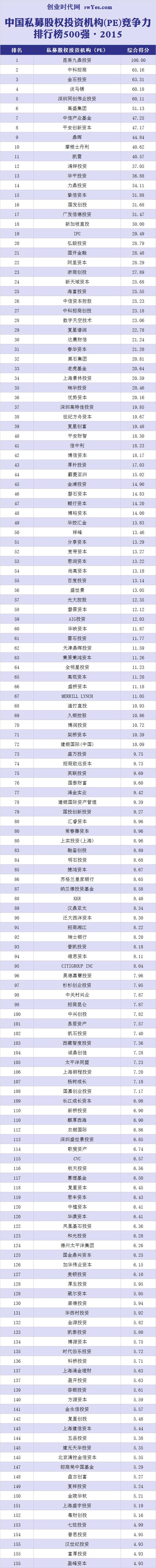 中国私募股权投资机构(PE)竞争力排行榜500强