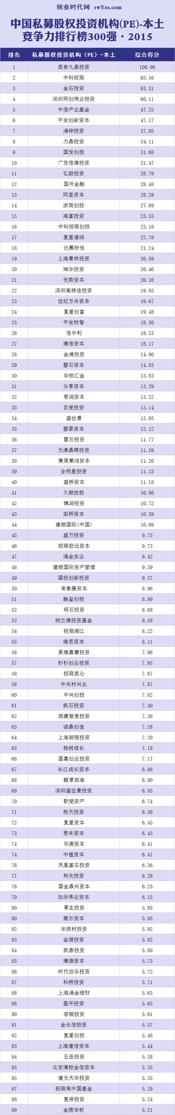 中国私募股权投资机构(PE)-本土竞争力排行榜
