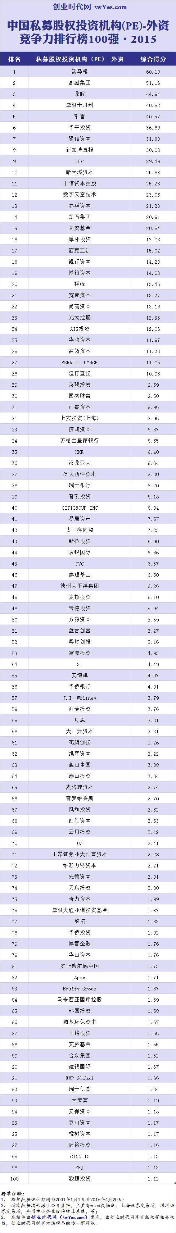 中国私募股权投资机构(PE)-外资竞争力排行榜