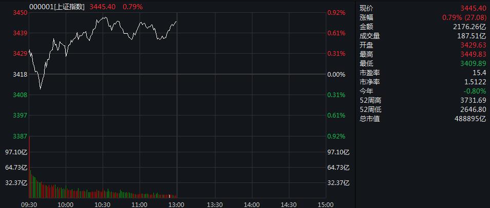 周一午盘,A股三大指数震荡走高。煤炭板块领涨,酒类、造纸、军工板块涨幅靠前;海运板块高开低走,在线教育、碳中和回调,环保、电力物联网、电子竞技等板块跌幅居前