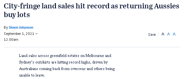 受从海外返澳及无法离境的买家购买力的推动,墨尔本与悉尼郊区的土地销售已创下历史新高。与此同时,虽然封锁给房屋拍卖带来了一定的打击,但并没有影响房价的上涨。