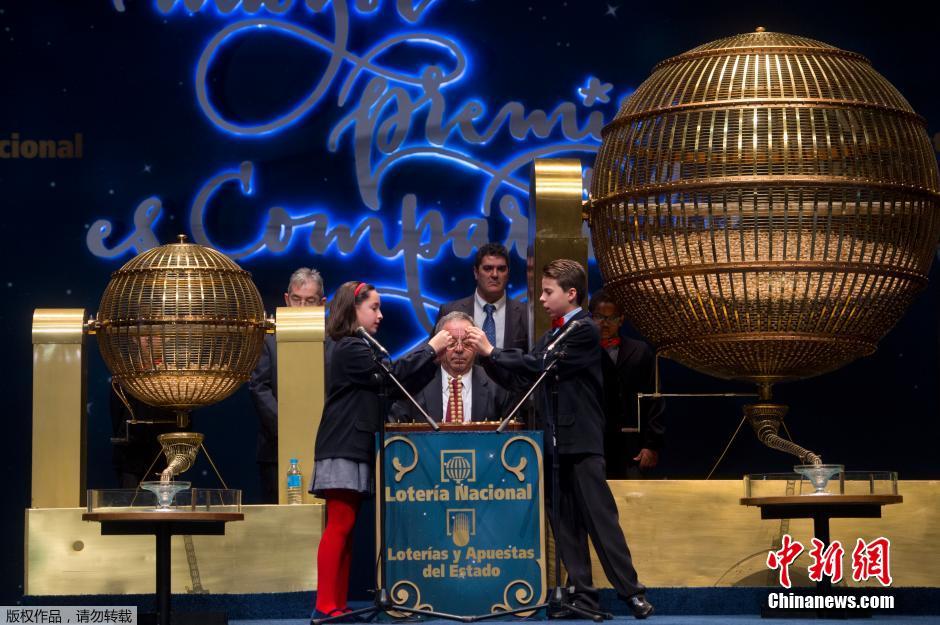 当地时间2015年12月22日,西班牙马德里,西班牙圣诞“大胖子”彩票在当地皇家剧院开奖。今年圣诞“大胖子”彩票总奖金额度达到22.4亿欧元,其中6.4亿将分成每份价值