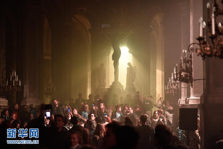 10月7日,人们在法国巴黎圣梅里教堂欣赏声光秀。第16届法国巴黎“不眠夜”艺术节于当地时间7日晚至8日清晨举行。根据巴黎市政府发布的消息,“不眠夜”期间巴黎各区