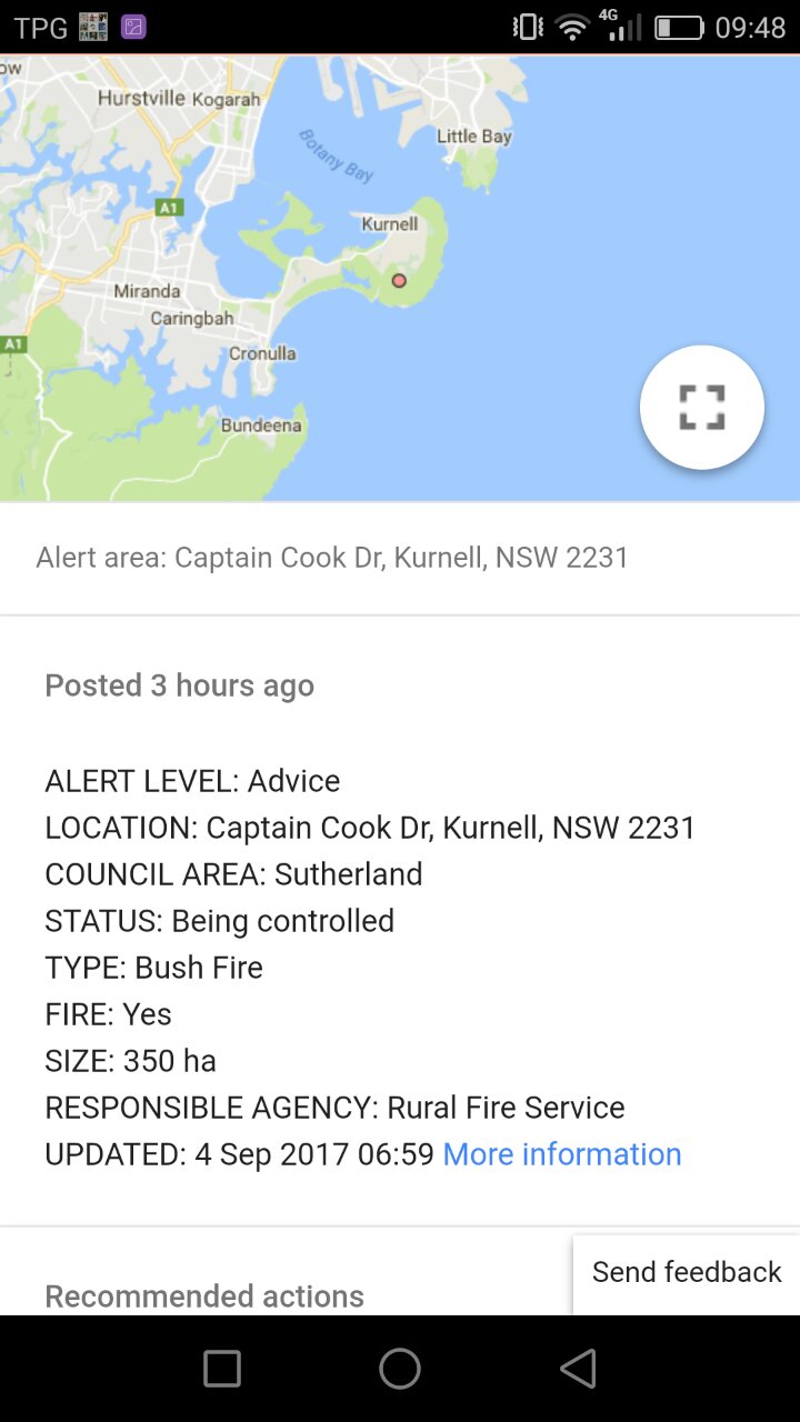 大火燃烧了一整晚,火灾附近区域有Caltex炼油厂和悉尼海水淡化厂。周一早上又接到报告称该区域发生了新的大火。