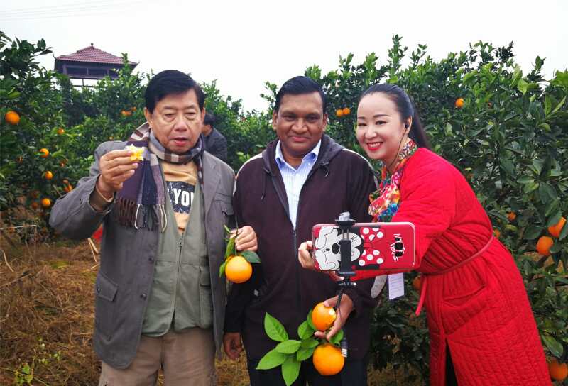 东盟国家客商与网红在果园体验品尝崀山脐橙