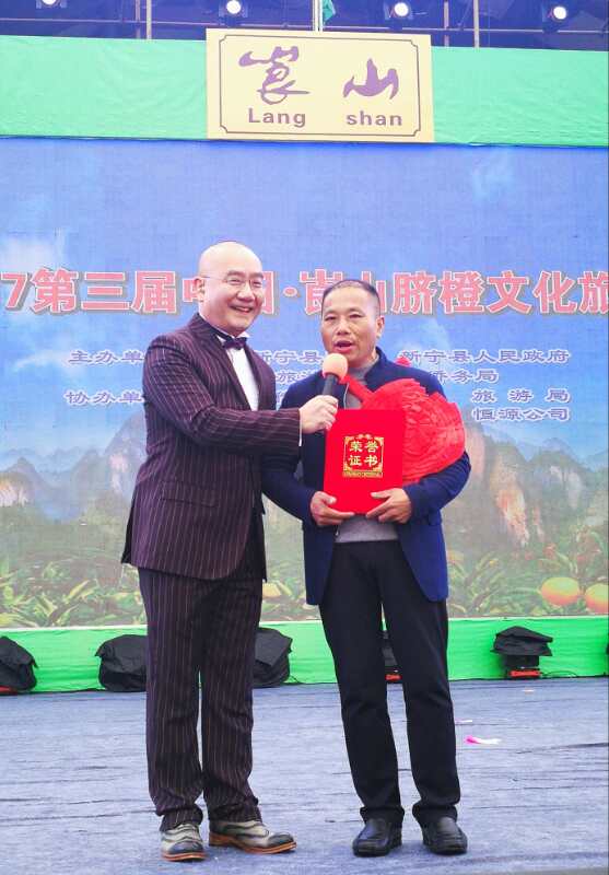 “我是新宁县一名土生土长的农民,非常荣幸获得2016年崀山脐橙销售唯一的特等奖,县里发给我2万元奖金。我们崀山果业有限公司与几百名农户合作建立万亩生态脐橙种植基地,2016年实现线上线下销售收入5000万元,我一定要保持这个荣誉,2017年我公司有信心实现崀山脐橙销售收入8000万元。”11月25日,第三届中国·崀山脐橙文化旅游节开幕式上,与59名崀山脐橙销售先进个人一起受表彰的崀山果业有限公司董事长陈锡祥这样告诉记者。