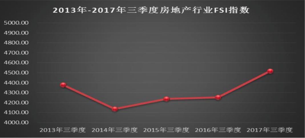 2017年三季度房地产行业财务安全质量出现了大幅上涨,但FSI行业指数在所有行业中仍然最低,综合行业主营业务利润率和FSI指数分析,2018年上半年投资者可谨慎观望或适当投资。