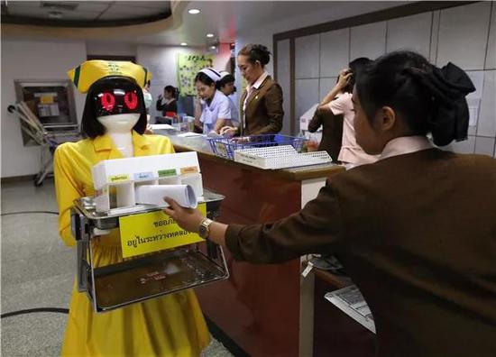 医院护士萨春“现身说法”介绍了机器人同事带来的福音:“机器人替代了护士送文件,让我们可以少跑点腿,腿也不会经常痛。”