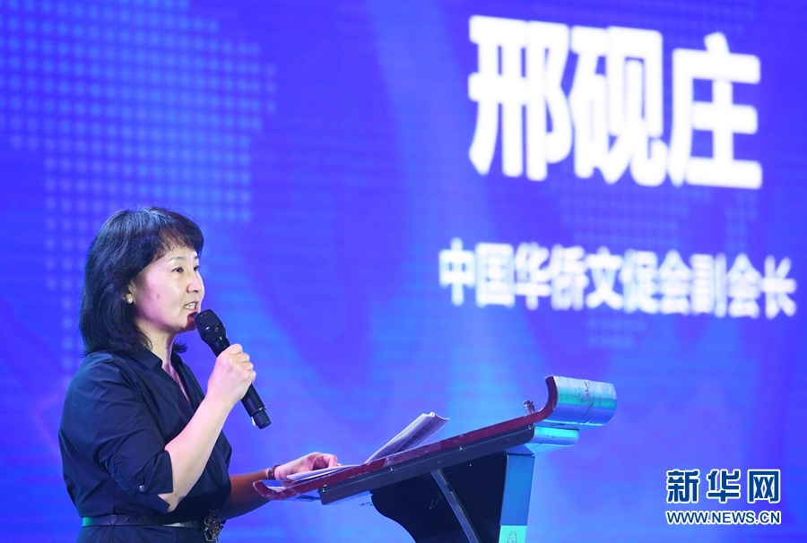 中国华侨文促会副会长邢砚庄在国际火锅食品产业峰会上发言。新华社记者王全超摄