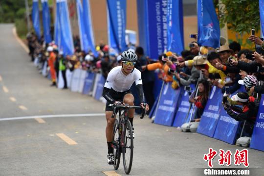 男子公路精英组冠军曾庆龙冲过终点。 张浪 摄
