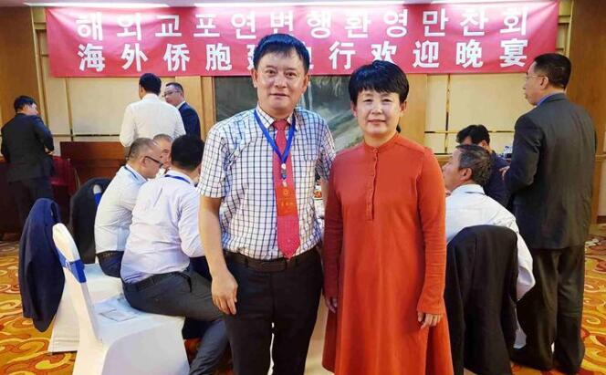 韩国全国韩籍华人总联合会总会长、韩国新华报社社长、在韩吉林同乡会名誉会长曹明权(左)同延边朝鲜族自治州侨联党组书记、主席李静(右)共同合影留念。