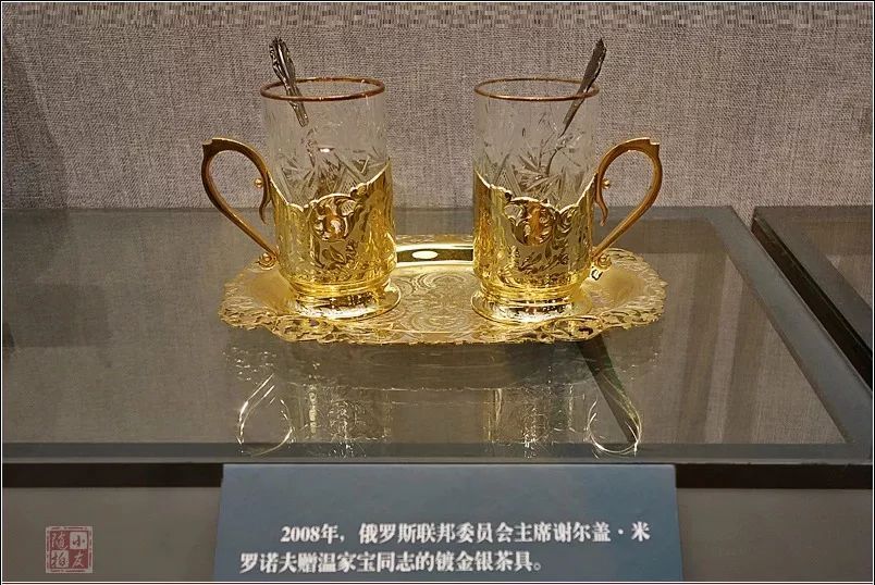 2008年,俄罗斯联邦委员会谢尔盖·米罗诺夫赠给的镀金银茶具。