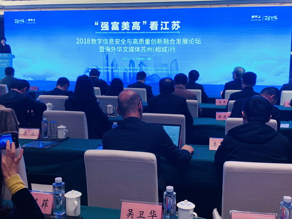 11月24日,2018数字信息安全与创新融合发展论坛暨海外华文媒体苏州行活动在苏州相城启动。活动以“强富美高”看江苏为主题,旨在为苏州高质量发展数字信息安全产业提供新的思路,为打造数字经济新高地开辟新路径和宣传渠道,吸引了国内外专家学者以及海外华文媒体代表300人左右参加开幕式。