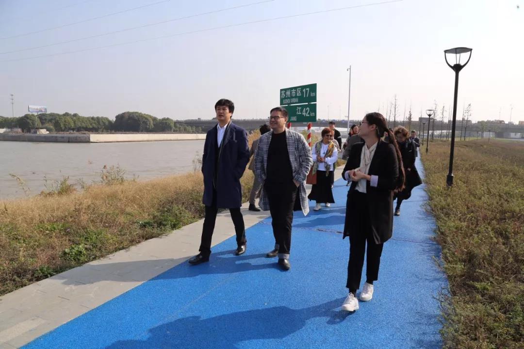 媒体团一行首先沿着运河公园步行,欣赏京杭大运河望亭镇段沿途景色。运河公园位于苏南运河望亭镇区段西侧,南至鹤溪大桥,北至双白桥,西至御亭路与鹤溪路交叉口,项目以打造苏州西北部“水上新门户”为目标,目前运河公园绿化景观工程已启动,未来将打造成既体现望亭传统文化,又突出运河环境特色,贯穿望亭古今的历史长廊。