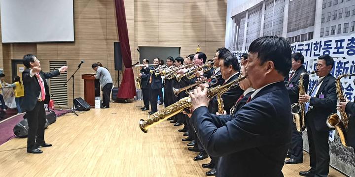 全国韩籍华人总联合会所属中国同胞联合乐团全体成员集体在国会议员会馆大礼堂亮相。